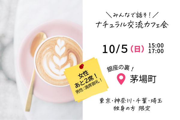 【残り女性2名!10/5開催】ナチュラル交流カフェ会開催のお知らせ【カフェ部】